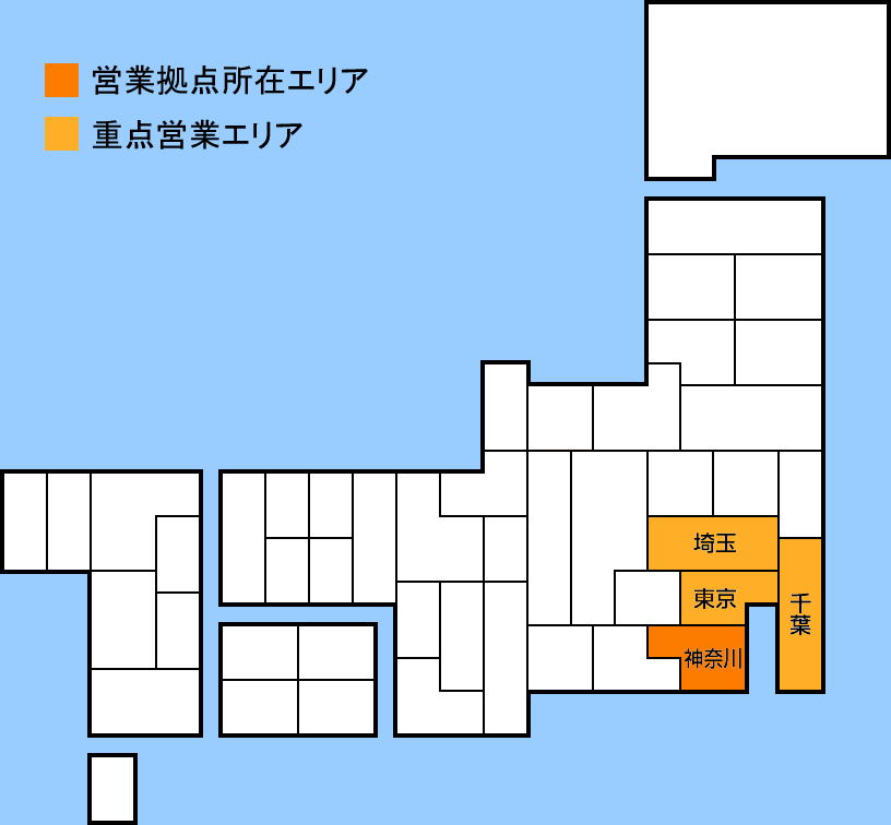 東京都・神奈川県・埼玉県・千葉県を中心とした関東地方を